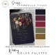 This stunning dark gothic wedding invitation features a luxurious moody and slightly withered floral arrangement in deep jewel tones over a black background. Perfect for a mysterious and romantic fall or winter ceremony. This dramatic design is ideal for couples seeking a non-traditional, opulent or vintage style. Created by Simply Farmhouse Press.