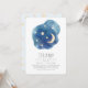 Esta luna y estrellas es una invitación para un niño a la ducha de bebé es perfecta para una simple ducha de bebé. El diseño moderno y caprichoso presenta una forma de nubes acuarela azul marino con una luna de barrio amarilla y estrellas.