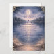 A serene lakeside scene under a soft twilight sky, designed for couples drawn to nature, stillness, and quiet romance. This design blends misty blue tones, reflective water, and a peaceful forest backdrop for an elegant outdoor feel. Perfect for a lakeside, mountain, or destination celebration with a timeless, atmospheric mood.