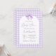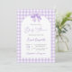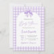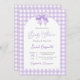 Purple Bow Baby Shower Invitación neutral con arco, invitación a la ducha de bebé gingham lavender