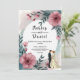 Esta elegante invitación a una boda floral acuática es perfecta para un boda moderno. El diseño romántico presenta un marco floral de color agua elegante con un ilustracion de novia y novio y una caligrafía negra con un fondo blanco.
