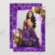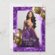 Eleva tu celebración de Quinceañera con nuestra cautivadora Invitación de Purpura y Oro de nuestra tienda Zazzle. La parte delantera de esta invitación presenta un marco morado glamuroso adornado con globos festivos, proporcionando un telón de fondo visualmente impresionante donde puedes insertar sin esfuerzo tu propia imagen. Diseñada con elegancia y comodidad en mente, la parte trasera de la invitación te permite personalizar cada detalle del evento, asegurando que tus invitados estén al día con toda la información importante para esta ocasión memorable.