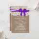 Invitación Morado Bow Rústico Burlap & Lace Wedding Ducha