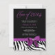 Elegante y elegante clase violeta y negro de 2014 Invitaciones a graduación / invitaciones con rayas de cebra en blanco y negro. Morado con el corazón Diamante.