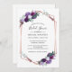 Invitación Morado Floral Script ducha de novia geométrica