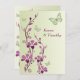 Invitación Morado, floral verde, mariposas invitan a la boda