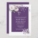 Flores acuáticas violetas moradas y rosas rosadas onduladas sobre un marco púrpura con letras blancas. La parte trasera de la tarjeta es morada. Los cuadros de texto son fáciles de personalizar con su propia información. El texto es una mezcla de fuentes caligráficas modernas y ornamentadas.