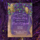 Bosque violeta encantado, búho sabio colgado en los frondosos árboles verdes. La invitación al murciélago mitzvah, estilo de cuentos, es versátil para los temas púrpura, violeta, bosque, sabiduría, búho y mitzvah murciélago natural. ¡Esta invitación a las lechuzas moradas es también una idea única para un murciélago gemelo mitzvah!