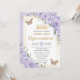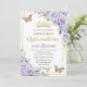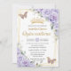 Invitación Morado Lavanda Floral Mariposa Oro Quinceanera