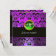 Invitación MORADO NEGRO DAMASCO MONOGRAMA, esmeralda verde