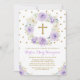 Invitación Morado Oro Acuarela Floral Baptismo Christening