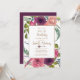 Invitación de cumpleaños número 60 con estilo boho de flores, plumas y flecha en colores púrpura, burdeos y rosa con brillo dorado. Contáctenos para obtener ayuda con la personalización o para solicitar productos coincidentes.