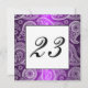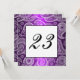 La impronta de satén púrpura profunda y brillante se ve colocada en un elegante paisley de encaje blanco para una recepción nupcial o tarjeta número de mesa fiesta, elegante y única.