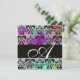 INVITACIÓN MORADO TURQUESA AQUA AZUL NEGRO DAMASCO MONOGRAMA