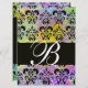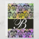 Invitación MORADO VERDE AMARILLO NEGRO DAMASCO MONOGRAMA , b
