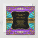 Invitación Morado Verde azulado Blue Damask Black Gold Birday