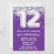 Invitación de 12 cumpleaños a una fiesta de 12 años de color morado y blanco para una plata blanca negra con escritura moderna y globos de Relieve metalizado divertidos.