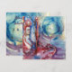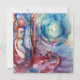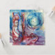Pintura contemporánea figurativa de acuarela colorida, caprichosa, romántica y simbolista de una figura legendaria espiritual y mística en colores azul suave, rosa, rojo, púrpura, violeta y blanco por Alessandro Lumini 1988. Diseño genial y artístico fácil de personalizar para ceremonia de boda, tarjeta de anuncio de nupcias, tarjetas de lugar, save-the-date, tarjetas de agradecimiento, fiestas de soltera, dulces 16, fiestas de cumpleaños de quinceañera, fiestas de compromiso romántico, Navidad, fiesta de fin de año de la oficina, reuniones familiares, celebraciones de Nochevieja, día de San Patricio, carnaval, fiestas de Martes de Carnaval, aniversarios, reuniones, graduaciones escolares, concierto, recital o casi cualquier evento que desees!. Morgan le Fay, conocida alternativamente como Morgane, Morgaine, Morgana y otras variantes, es una poderosa hechicera de Avalon en la leyenda artúrica. Avalon (probablemente del vocablo celta galés afal, que significa manzana; es una isla legendaria que aparece en la leyenda artúrica, famosa por sus hermosas manzanas. Aparece por primera vez en el relato pseudohistórico de Geoffrey de Monmouth de 1136 "La historia de los reyes de Bretaña" como el lugar donde se forjó la espada de Caliburn (Excalibur) del rey Arturo y más tarde donde Arturo es llevado para recuperarse de sus heridas después de la