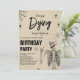 Invite a sus invitados a una celebración espeluznante con la invitación de cumpleaños de Halloween "Dying For You To Join Us". Con un esqueleto espeluznante, una intrincada telaraña y una araña acechante sobre un fondo rústico marrón, este diseño espeluznante es perfecto para dar el tono a tu acosado evento. BRT113
