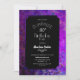 Invitación de cumpleaños sorpresa negra número 80 con un cuadro pintado de violeta.