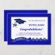Clase Mortero y diploma de la fiesta de graduación 2018 Invitación en colores azul real. Fácil de personalizar - sólo ponga su nombre. tu escuela y dirección. También puede cambiar la fuente, el color y el tamaño.
