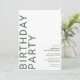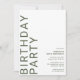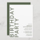 Invitaciones modernas y elegantes para fiestas de cumpleaños con acentos verdes oscuros sobre un fondo blanco. Se puede cambiar para adaptarlo a cualquier edad.