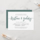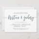 Nuestro elegante y moderno ensayo de bodas o invitaciones a fiestas de cócteles en verde musgo y blanco presentan sus nombres en tipografía manuscrita. Personalice con sus detalles de ensayo de ceremonia y de cena de ensayo debajo. Incluye espacio para el momento del ensayo y dirección de la iglesia o el lugar. Las tarjetas cambian a azul marino sólido. Un diseño de moda en tonos verde oscuro y blanco oscuro para las parejas modernas y los eventos elegantes.
