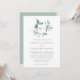 Nuestra hermosa invitación a una boda con una acuarela en color Mountain Meadow incluye tus iniciales, monograma o duograma en la parte superior, enclavado dentro de una corona cuadrada de color agua de primavera follaje y hojas en tonos pálidos de verde salvia y violeta púrpura. Un enfoque moderno y elegante de la tendencia botánica para bodas de primavera o verano.