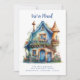 Ilustracion de la casa caprichoso nuevo hogar móvil tarjeta de invitación.