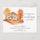 Esta encantadora invitación cuenta con una escena de árboles de otoño acuáticos con una casa al fondo. Las palabras "Nuestra familia ha plantado nuevas raíces". Es la manera perfecta de hacer que sus amigos y familiares sepan de su próximo movimiento. Seguramente será un éxito con todos los que lo reciben.