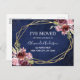 Borgoña, azul marino y Rubor Pink Modern and Elegant Floral Watercolor Faux Relieve metalizado dorado Geometric Spring I've Moved New Home or New Address cards - incluye una tipografía de escritura hermosa y elegante con flores botánicas modernas y vegetación para la celebración especial New Home o New Address.