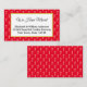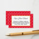 Puede personalizar el texto negro con su nombre y su nueva dirección. En la parte superior, se puede personalizar el elegante guión negro que dice "Nos hemos mudado". Un audífono de oro falso está alrededor del cuadro de texto. Esta invitación rojiza en movimiento tiene un patrón de latas de dulces en la parte delantera y trasera.