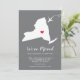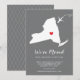 Moderna invitación en movimiento con el estado de NUEVA YORK con un corazón rojo y un avión sobre un fondo gris. El color de fondo se puede cambiar fácilmente haciendo clic en personalizar y luego en personalizar para ver nuestro selector de color. ¡Desde ahí también puedes mover el avión y el corazón! Póngase en contacto con nuestra tienda si necesita ayuda o necesita otro estado.