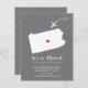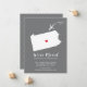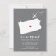 Moderna invitación en movimiento con el estado de Pensilvania con un corazón rojo y un avión sobre un fondo gris. El color de fondo se puede cambiar fácilmente haciendo clic en personalizar y luego en personalizar para ver nuestro selector de color. ¡Desde ahí también puedes mover el avión y el corazón! Póngase en contacto con nuestra tienda si necesita ayuda o necesita otro estado.