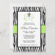 Invitaciones de Baby Shower de la cebra. Una invitación linda de la fiesta de bienvenida al bebé de la cebra de la verde lima y del negro.