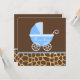 Una invitación linda de la fiesta de bienvenida al bebé de la jirafa del muchacho. Mostrado en azul, marrón y blanco. Perfeccione para una fiesta de bienvenida al bebé del muchacho. Elegante y lindo -- ¡Personalice fácilmente para su fiesta de bienvenida al bebé!