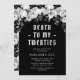¡Marque su hito con un toque de diseño! Nuestras elegantes invitaciones para fiestas de cumpleaños número 30 combinan sofisticación con un toque de humor. Con un elegante fondo negro, un rústico diseño floral de acuarela y una artística plantilla de celebración de la 'muerte a mis veinte años', esta invitación es el epítome de una moda única. Una manera perfecta de ir a la calle a los 20 años y dar la bienvenida a los apasionantes 30.