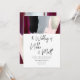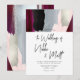 La invitación de boda roja masala moderna y chic de PixDezines presenta pinceladas de acuarela en rojo oscuro profundo que se puede llamar dahlia rojo, burdeos o vino tinto. La escritura a mano también sigue la tendencia moderna de esta tarjeta. Paleta de colores de boda de burdeos + rosa pálido, negro, dorado rosa con metálico falso de plata y gris. Fácil de rediseñar desde nuestras diversas plantillas.