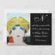 Vibrante, elegante ilustración de alta costura Art Déco francés con monograma. Retrato de una hermosa y elegante joven que lleva un sombrero oriental amarillo con plumas en colores negro, blanco, amarillo, azul y rojo. Invitación de fiesta fresca, moderna y artística.
