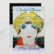 Vibrante, elegante ilustración de alta costura Art Déco francés con monograma. Retrato de una hermosa y elegante joven que lleva un sombrero oriental amarillo con plumas en colores negro, blanco, amarillo, azul y rojo. Invitación de fiesta fresca, moderna y artística.