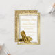 La elegante invitación a la fiesta de cumpleaños blanca y dorada de la mujer con hermosos zapatos de tacón dorado sobre un elegante fondo purpurina de diamantes blanco y dorado. Estas elegantes invitaciones para fiestas de cumpleaños en blanco y oro se personalizan fácilmente para tu evento, simplemente añadiendo tus detalles en el estilo de letra y la redacción de tu elección.