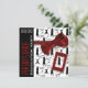 Invitaciones a "fiesta graduado" para mujeres con plantillas de texto de personalizable, con una cinta roja y las palabras "graduada de felicitaciones" colocadas en un fondo blanco con escritura roja y siluetas negras de una mujer graduada saltando al aire con alegría, con la noticia de que ha aprobado sus exámenes y obtenido su título.PERSONALÍZALO: Cambie el texto a cualquiera de sus opciones personales, cambie el tamaño/color y el estilo de la fuente para que se adapte a sus necesidades únicas y no dude en cambiar el color de fondo a cualquiera de sus opciones. IDEAL PARA: Cualquier mujer que haya logrado su título y se esté graduando, ya sea su esposa, hija, sobrina, hermanastra, madre, amiga o abuela.