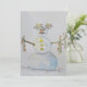 ¡Una excelente invitación para una boda de invierno o ducha, o fiesta de vacaciones! Personaliza en la parte posterior. También podría usarse como arte de invierno, acuarela de 5x7. ¡Decora para la temporada! Este muñeco de nieve lleva una corona floral y tiene más flores en sus brazos de palo. También haría una excelente tarjeta de Navidad. Arte original de Kristina Anderson