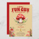 Un chico divertido está en camino - Cute Mushroom Woodland Fall Invitación de Baby Shower, Celebra la llegada de tu pequeño con esta caprichosa Invitación de Baby Shower de Woodland Fall con un adorable hongo rojo de toadstool, caracol sonriente, animales del bosque y hojas de otoño! Esta encantadora invitación, decorada con la lúgubre frase "A Little Fun Guy is On the Way", es perfecta para las duchas de otoño, las reuniones con temática de los bosques o los eventos inspirados en la naturaleza. Personalízalo con el nombre, la fecha, la hora y la ubicación del padre. Los cálidos tonos tierra y los ilustraciones del bosque crean un ambiente rústico y acogedor, ideal para una celebración de bebés en el exterior o en el interior.