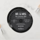 Una elegante plantilla de invitación a la boda con temática musical en forma de disco de vinilo, que presenta un fondo negro texturado con un overlay de hoja de música, tipografía elegante y caligrafía retro vintage. El título: "Sr. y Sra., nuestros mejores éxitos". Una elección elegante y divertida para los músicos o amantes de la música y quieren una celebración más informal, pero elegante, boda. Perfecto para los amantes de los registros vintage, las etiquetas LP vintage y los tipos de letra del guión estilo 70.
