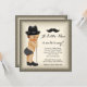 Mustache invitación a la ducha de bebé con adorable dapper pequeño bebé usando zapatos de vestir, gorra y pañal de vestir con un fondo negro y beige. Esta adorable invitación a la ducha de bebé de un hombre pequeño se personaliza fácilmente para tu evento añadiendo los detalles de tu evento, el estilo de fuente, el tamaño y el color del tipo de letra y la redacción. Puede eliminar el fondo y cambiar el color.