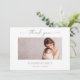 Express gratitude to friends, family and loved ones with this muted gray minimalist baby photo thank you card. The design features an elegant calligraphy script that reads "Thank You", a clean white space to add your baby's first portrait, name, birthdate and custom message.
