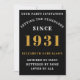 Para los nacidos en 1931 y celebrando su fiesta de cumpleaños número 90 tenemos la tarjeta de invitación ideal para el cumpleaños. El fondo negro, blanco y dorado, es sencillo y elegante. Personalizar fácilmente el texto en la parte delantera y trasera de esta tarjeta de invitación de cumpleaños utilizando la plantilla proporcionada. Parte de la gama de normas de configuración de tarjetas, suministros para fiestas y regalos.