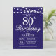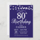 Invitación de cumpleaños número 80 con String Lights. Fondo Azul de la Marina. 13. 15. 16. 18. 20. 21. 30. 40. 50. 60. 70. 80. 90. 100. Cualquier edad. Para más personalización, haga clic en el botón "Personalizar" y utilice nuestra herramienta de diseño para modificar esta plantilla.