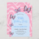 Invitación Nacimiento azul rosa de mariposa de ola retro